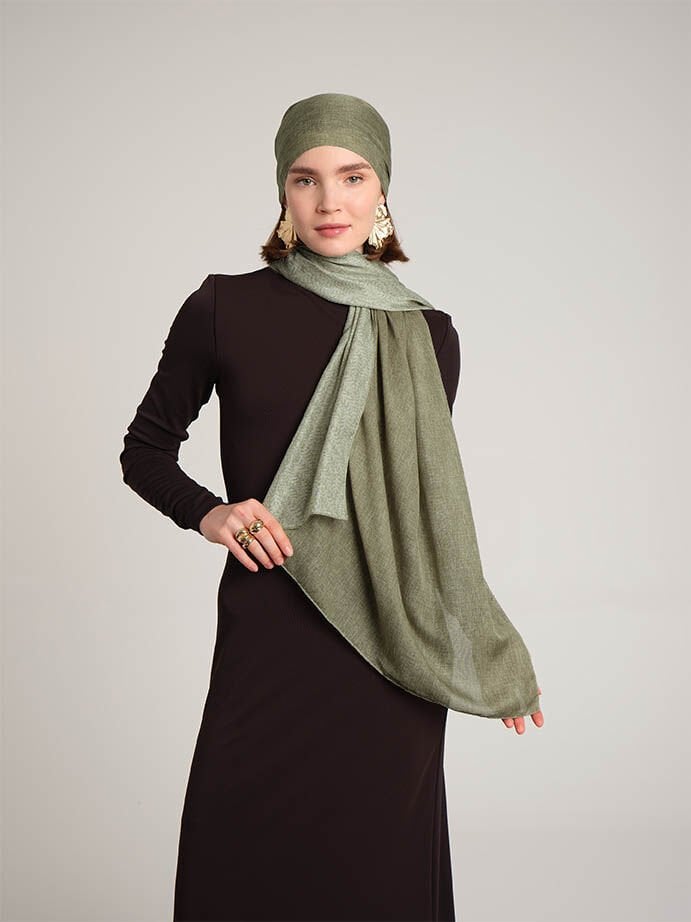 Buğu Düz Desenli Çift Taraflı Şal - Uçuk Yeşil